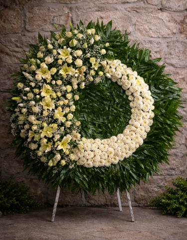 Elaboramos coronas florales para expresar condolencias, acompañar y rendir homenaje en momentos difíciles.